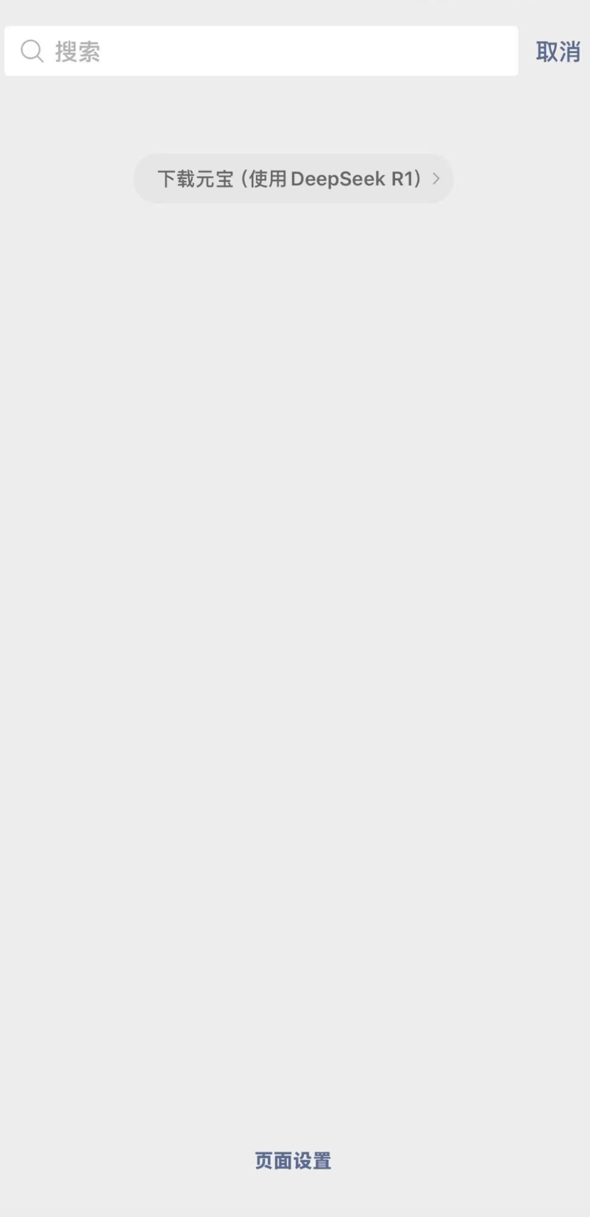 从今天开始,尚未被灰度到AI搜索的用户,点击微信对话框顶部的搜索栏,进入微信搜索,将有机会在页面中看到“下载元宝(体验DeepSeek-R1)“。