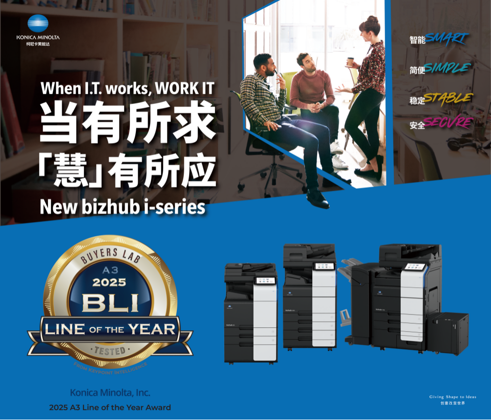 柯尼卡美能达旗下全新 i系列A3彩色/黑白数码复合机揽获Keypoint Intelligence“2025年度A3杰出全系列产品”等共五项年度大奖