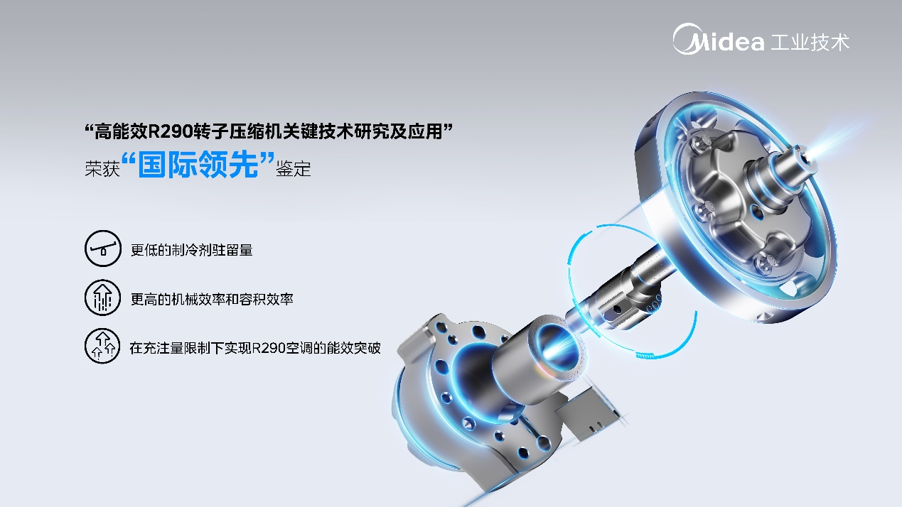 在持续的环保冷媒技术研发与创新突破下,2023年,美芝高能效R290转子压缩机关键技术研究及应用荣获“国际领先”鉴定,通过降低压缩机的制冷剂驻留量、提高压缩机的容积效率、提高压缩机的机械效率三大创新,实现了R290转子压缩机的单体高效化和制冷剂驻留的减量化,引领行业节能减排与绿色可持续潮流。