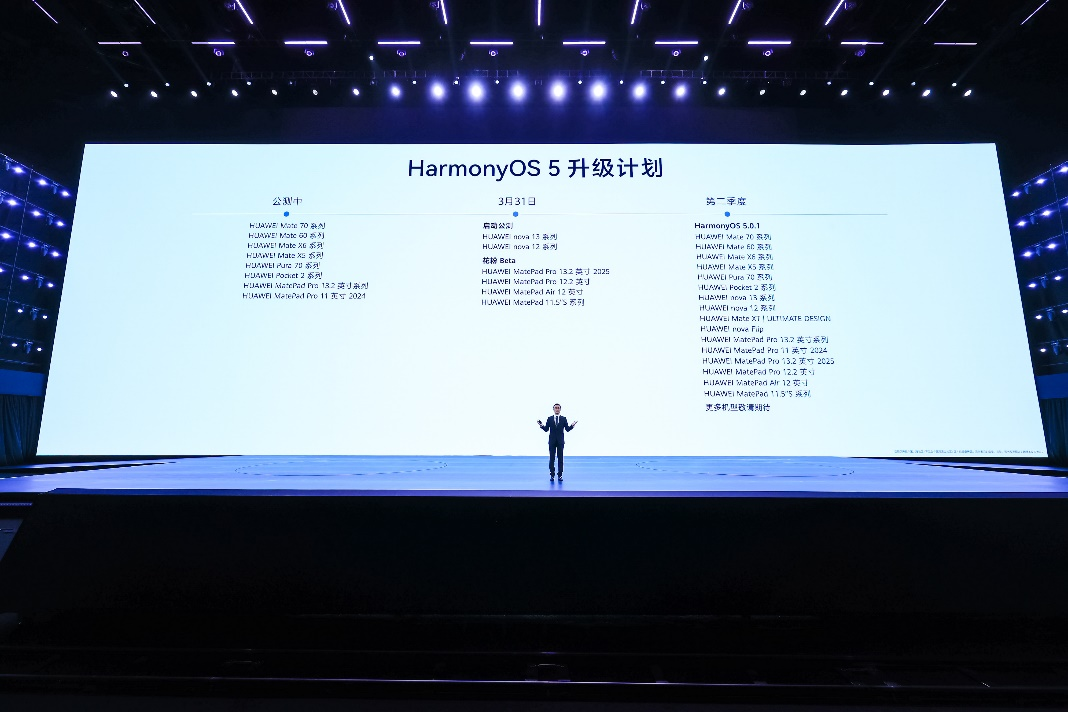 根据官方信息,2025年第二季度,华为将开启多款机型的HarmonyOS 5.0.1推送升级计划,包括HUAWEI Mate 70 系列、HUAWEI Mate 60 系列、HUAWEI Mate X6 系列、HUAWEI MatePad Pro 13.2 英寸系列等。