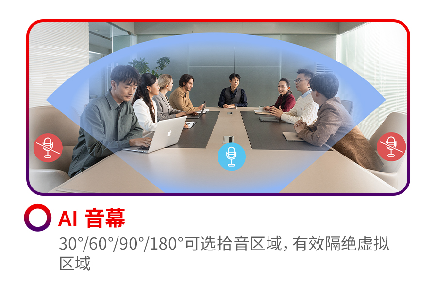 可立享无线会议屏ClickShare X-Display Plus采用16阵列麦克风,能够实现12米远距离精准拾音;它的AI音幕功能实现30°/60°/90°/180°可选拾音区域,有效隔绝虚拟区域;通过AI降噪功能,可以有效滤除300多种噪音干扰,并通过AI解混响功能,确保声音自然纯净。