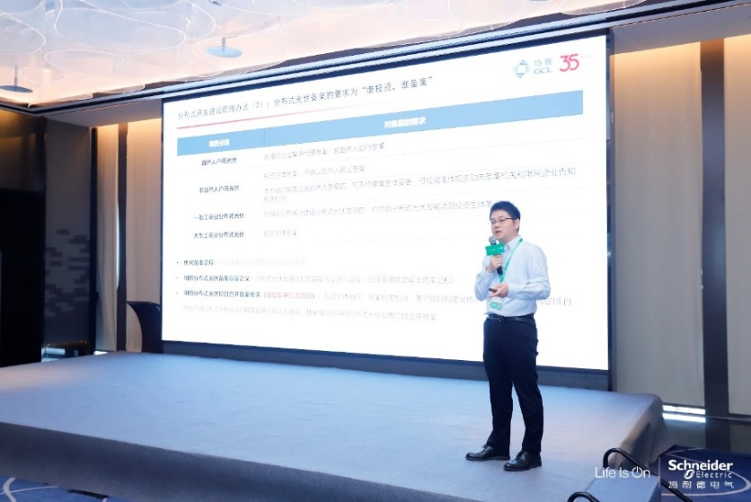 作为新型电力系统的建设者和赋能者,施耐德电气持续深耕技术创新与产业应用,凭借覆盖源网荷储全场景的解决方案及领先的全生命周期服务,为用能企业带来安全、经济和绿色三大价值。活动现场,施耐德电气综能微网业务负责人黄弘扬聚焦关键应用场景,详细介绍了施耐德电气综能微网解决方案,他表示:“构建智能、绿色、灵活的微电网是建设新型电力系统的关键环节。面对高比例新能源场景,施耐德电气依托数字化、电气化技术,立足用户实际需求,提供从规划调研、分析设计、收益评估、组网建设到长期能源运营的微电网整体解决方案,助力客户实现能源电力精细化管理。”