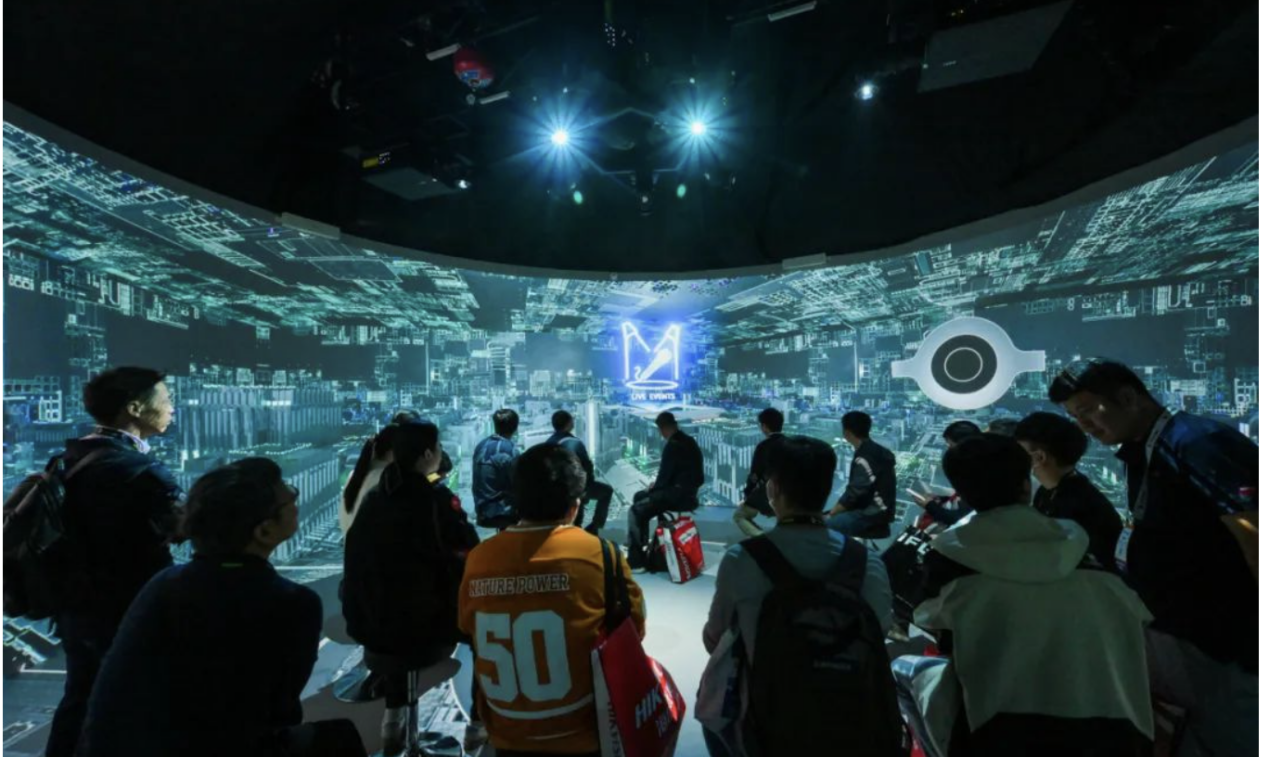 在“沉浸环宇”外墙上,2台巴可新一代3片DLP投影机QDX配合L型短焦镜头拼融投影弧形屏幕,画面宽7.2米,高2.65米,分辨率为6520×2400,即使在明亮的会场环境中,依然展现出惊艳的细腻度和卓越的色彩表现,画面流畅而逼真。