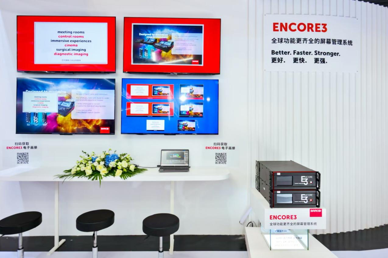 展区中还展示了图像管理大师系列全新平台Encore3,通过四个大屏显示器展现无损原生4K内容处理、最多8路4K输出以及超低延迟等出色性能,让观众近距离体验强大的功能与操作的便捷性。