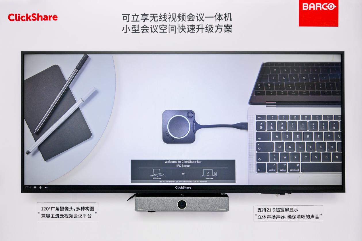 在本届展会上首秀的可立享无线会议屏,凭借一体化设计真正实现化繁为简,通过专业音视频技术实现高效沟通,无线BYOM使用更便捷,再加上灵活的扩展与稳健的品质,成为高端音视频会议室的理想选择。