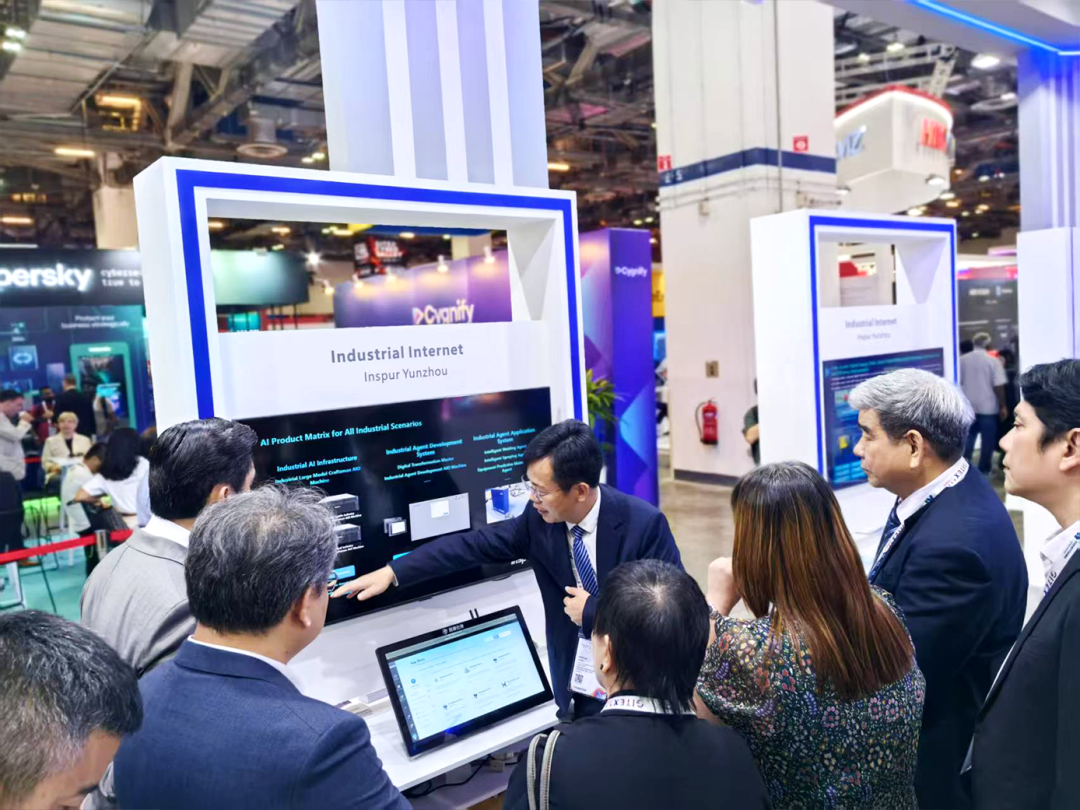 展会期间,浪潮云洲工业互联网副董事长、总经理庞松涛率队接待了来自新加坡、英国、瑞典等来自全球各地的客户,围绕AI大模型一体机、数转大师、跨境数字供应链、数字云仓、数字云工厂等业务出海合作进行了交流。