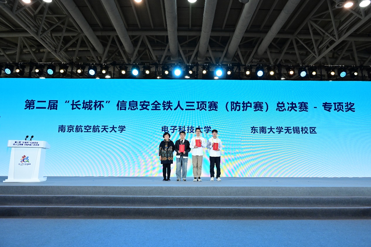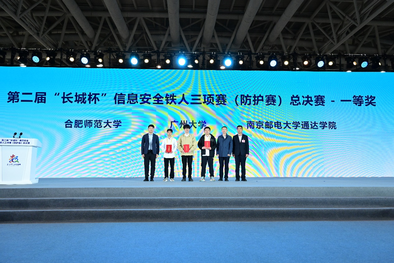 经过7小时激烈角逐及大赛裁判组严格评审,本次总决赛评比出一、二、三等奖和专项奖。来自广州大学、南京邮电大学通达学院、合肥师范学院的队伍获得一等奖;来自浙江师范大学、吉林大学、国防科技大学、哈尔滨工业大学、西北工业大学、西北大学、山东警察学院、安徽工业经济职业技术学院、北京航空航天大学、中山大学、五邑大学、安徽大学、上海交通大学、南昌航空大学科技学院、广东外语外贸大学等15所高校的队伍获得二等奖;来自东南大学无锡校区的队伍获得逆向分析专项奖,来自南京航空航天大学的队伍获得人工智能专项奖,来自电子科技大学的队伍获得网络渗透专项奖;此外,来自全国高校的79支队伍获得三等奖。