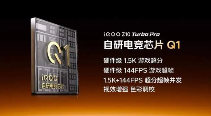无双芯,不 Turbo。iQOO Z10 Turbo Pro 拥有旗舰同款的自研电竞芯片 Q1,联袂第四代骁龙 8s 带来同档唯一的旗舰双芯,支持硬件级超帧超分,做到视效满格,功耗打折。Z10 Turbo Pro能够实现最高 1.5K PC 级游戏超分,还带来 Top 30+ 主流游戏独家超帧优化、100+ 款游戏144FPS 超帧和多款游戏的高质量超分超帧并发,配合散热背夹在 Monster+ 模式下更是做到 1.5K 高质量超分 + 144FPS 超帧并发,超分超帧游戏体验在同档产品中鹤立鸡群。