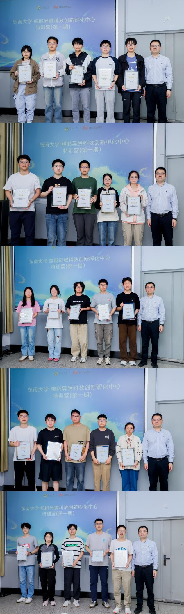 最后,特训营为学员们举办了成果展示与结营仪式,为学员们颁发了结课证书。东南大学网络与信息中心副主任胡轶宁总结道:“孵化中心将持续推进‘科研-教学-产业’闭环,培养具备鲲鹏昇腾原生开发能力的复合型人才。”昇腾计算技术开发团队负责人则鼓励学员投身国产AI生态建设:“从算子开发到全栈优化,每个环节都是技术攻坚的战场。”