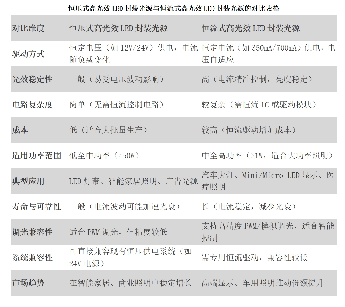 (3) 封装工艺创新:COB(板上芯片)、倒装芯片(Flip-Chip)技术成熟,支持恒压驱动与高光效结合。