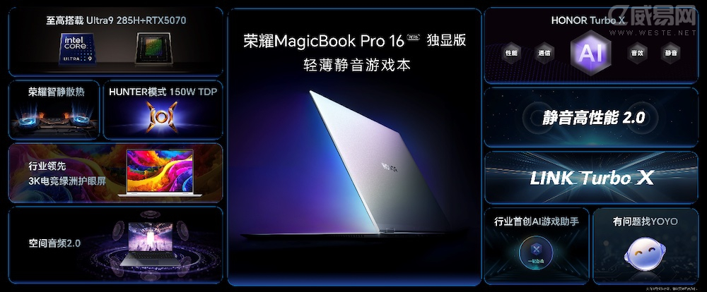 在阿尔法战略驱动下,荣耀4月迎来产品与技术的大爆发,不仅推出了续航最长的手机荣耀Power,还发布了游戏性能卓越的荣耀GT Pro手机和GT平板,以及此次首发搭载RTX 5070的荣耀MagicBook Pro 16 HUNTER版2025。一连串的实力新品,展现出强大的品牌势能,也标志着荣耀向全球领先的AI终端生态公司转型加速。