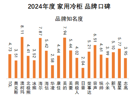 (一)品牌知名度:澳柯玛、美的、海尔居前三