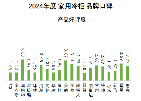 澳柯玛以“专业制冷”形象获消费者高度认可,美的、海尔分列二、三位。星星、荣事达凭借产品创新和服务优化进入前十,志高、创维因负面声量增加退出榜单,体现美誉度对品牌信任度的直接影响。