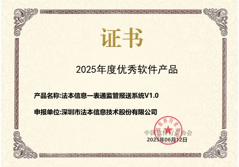 以其先进性,法本信息“一表通”产品荣膺中国软件行业协会颁发“2025年度优秀软件产品”。