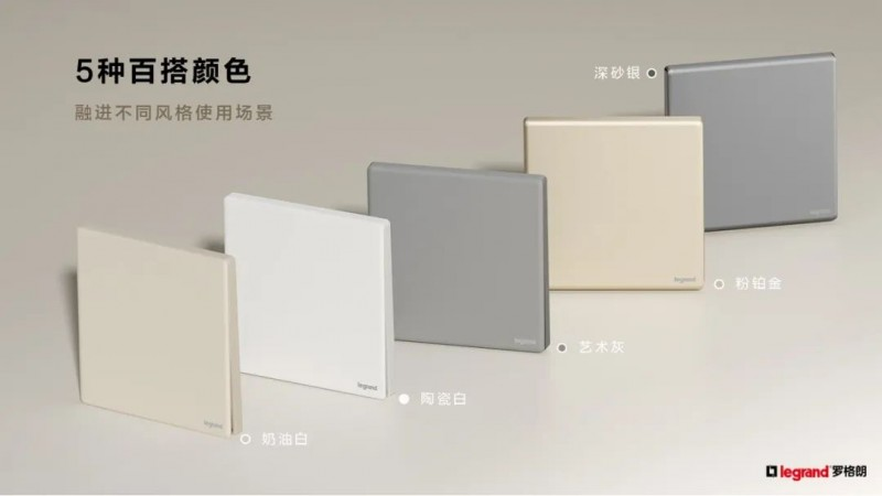 罗格朗2025年新品智绘系列超薄6.5mm开关,面板整体纤薄圆润,提供5款丰富配色选择。智绘系列可以用“真耐用、真安全、真顺手”三个真概括,融合了国际品牌的设计优势和本土化功能创新,是一款兼顾颜值与实用性的标杆产品。