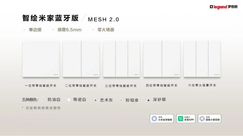 罗格朗智绘系列提供同一设计语言的强弱电面板和米家蓝牙版智能开关的配套,以"无感交互、无缝联动、无限可能"的产品美学,重新定义了智能开关的价值边界,为每个家庭打造专属的智慧生活空间。