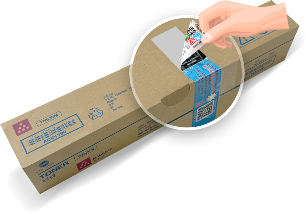 柯尼卡美能达Simitri V碳粉外包装盒上的防伪标签