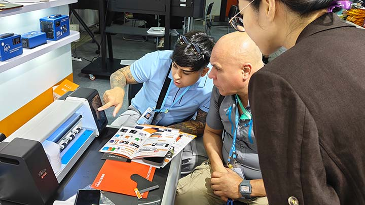 在智能硬件展位,Mietubl 美特柏秉持 “Make It Easier To Use, Better Life” 的品牌理念,带来了全球领先的智能切膜机,凭借多项创新技术成为展会焦点。该设备搭载可实时更新的云端数据库,涵盖 26000 多个型号数据;支持离线使用,确保无网络环境下仍能高效运行;同时具备超大切割范围,兼容多种尺寸规格,且支持不限次数切割操作;其创新设计还进一步提升了贴膜的便捷性与美观度。现场,Mietubl 美特柏的展位吸引了大量海外采购商驻足体验,产品的高智能化与广泛适用性,充分展现了中国品牌在智能制造领域的领先地位。
