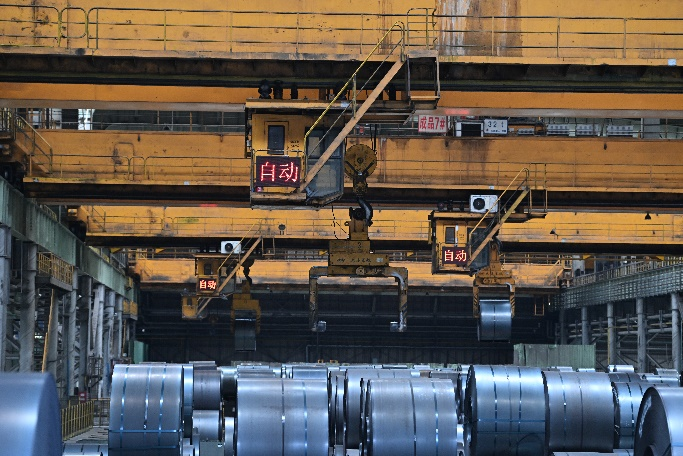 如今,经过改造的1580热轧卷库区实现了从热卷入库到打包、平整、倒运、取样以及钢卷出库的全流程无人化作业,满足单天1.3万吨全流程产能需求。工作人员只需要编制好生产计划、转库驳运计划,系统就能自动分配任务并设定行车行驶路线完成吊运作业,并可24小时不间断运行,提高吊运作业的标准化和连续运行作业效率,降低因人为因素造成的停机时间、往返路程、搜寻时间和倒库次数。