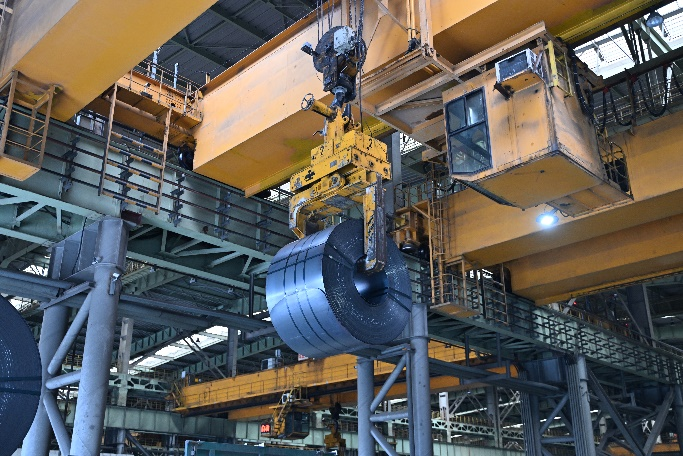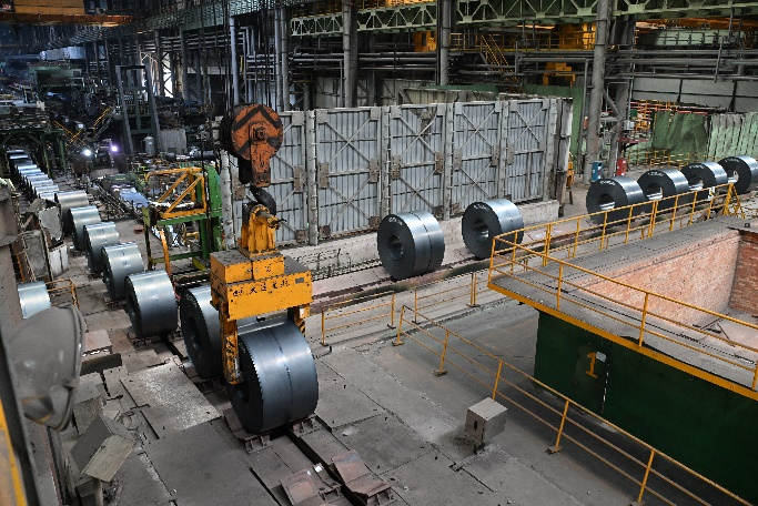 入库环节,系统能够依据各跨的实际库容、存储能力以及行车作业情况,在兼顾工序的前提下,进行普通钢卷和特殊钢卷的智能分流:分卷原料智能进平整跨区,缓冷钢卷智能入坑,缺陷钢卷智能标记化。单跨小时下卷能力平均在16卷,下卷能力完全满足轧线生产需求。