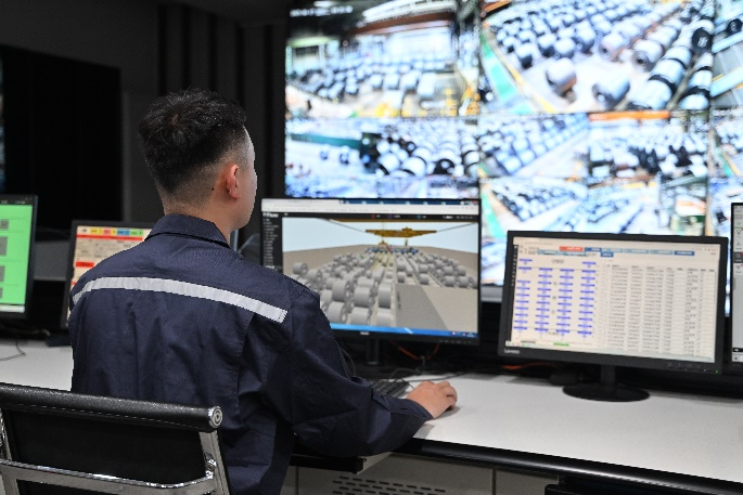 除了效率的优化、人员的减少以及产品质量的提升,鲅鱼圈分公司的管理模式也由此实现了升级——现在,坐在中控室,管理人员即可通过数字孪生模型查看行车运行情况,以数字化替代传统人工传递和管理信息的模式。