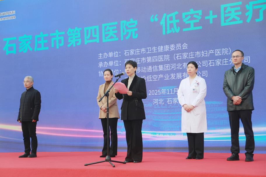 石家庄市人民政府副市长张峰珍,石家庄市卫生健康委党组书记、主任许尽晖,石家庄市第四医院党委书记郭清,党委副书记、院长张靖霄,中国移动通信集团河北有限公司石家庄分公司党委书记、总经理刘磊,河北航空投资集团党委书记、董事长于胜永共同“推杆”启动,“低空+医疗”首飞启航。