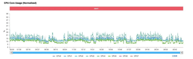 全核心基本都懒得动,使用率都没超过 30%。
