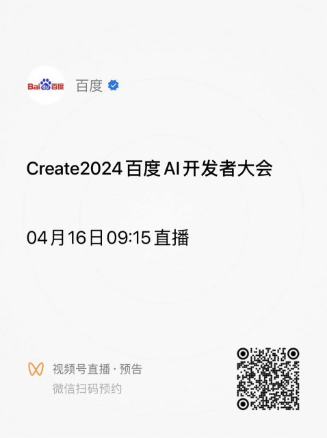 今天9点15,百度李彦宏将在Create2024 百度AI开发者大会上发表2024首场演讲《人人都是开发者》。
