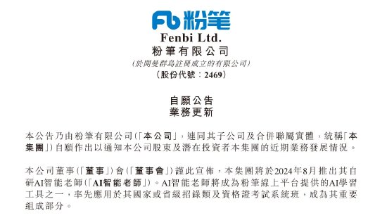 粉笔在港交所公告称,将于2024年8月推出其自研“AI智能老师”。“AI智能老师”将成为粉笔线上平台提供的AI学习工具之一,率先应用于其国家或省级招录类及资格证考试系统班,成为其重要组成部分。