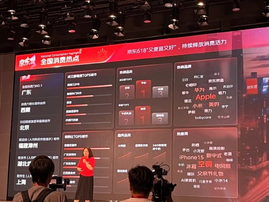 6月18日,在京东618媒体开放日上,消费及产业发展研究院刘琦公布了今年618的消费趋势,其介绍道,在今年618中,广东成为全国消费力最高的省份、西藏为消费力增长最快省份、北京为以旧换新渗透率最高省市、福建漳州为爱运动(人均购买件数最多)城市。