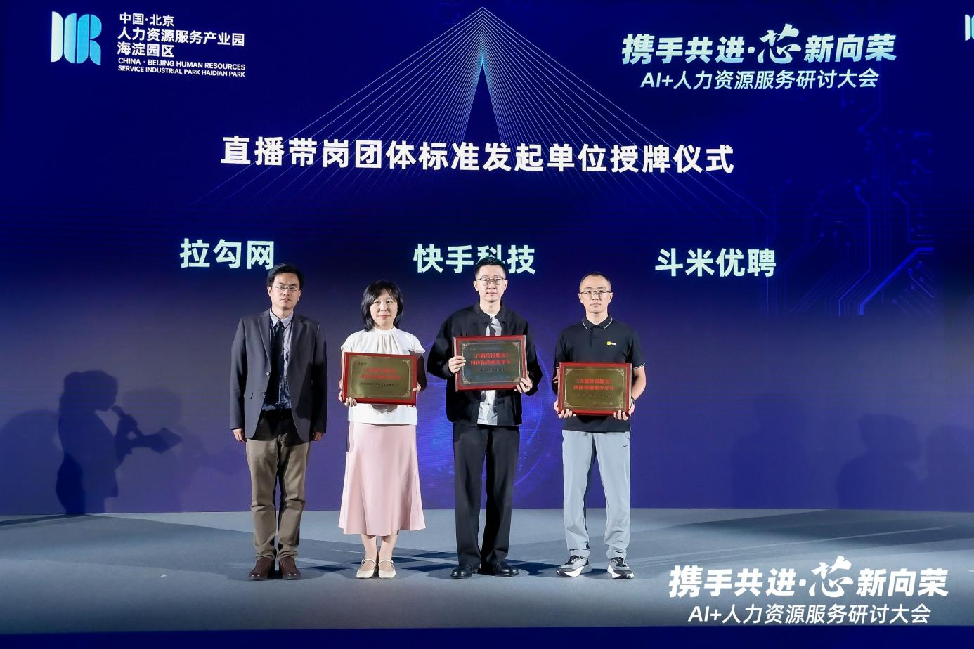 近日,在北京市人力资源服务“产业行”活动暨“携手共进·芯新向荣”人工智能+人力资源服务研讨大会上,快手快聘与北京人力资源服务行业协会、北京斗米优聘科技发展有限公司、北京拉勾网络技术有限公司共同发起并发布了全国首个直播带岗团体标准,实现了在该领域的创新突破。