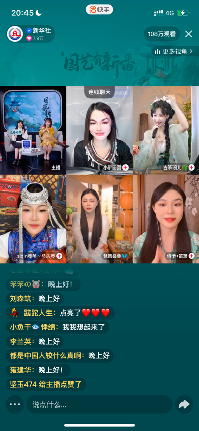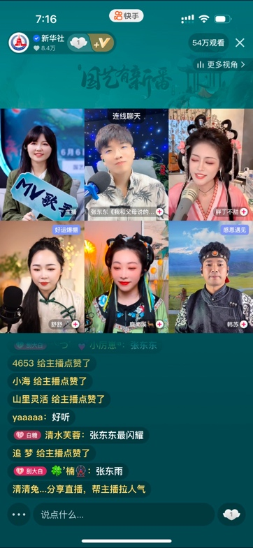 @舒舒的嗓音柔美无比,以娓娓道来的唱腔让大家仿佛穿越到八十年代,看到金曲时代的影子。此外,@鹿南溪 和@韩苏 两位主播分别带来了广西民歌,以及蒙古民歌和马头琴表演,一个高音轻松拿下冠绝全场,一个气势磅礴让“想你的风吹到草原”,给直播间观众可谓带来了亿点点震撼。