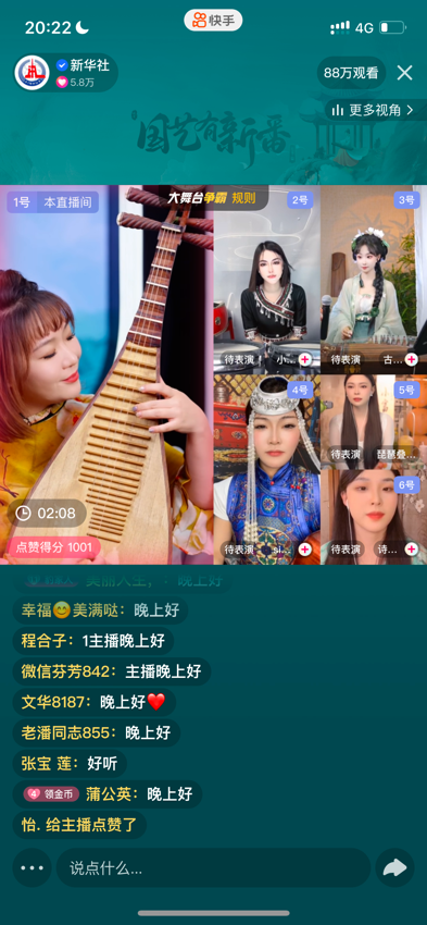 在第二期“曲夜未央”中,@琵琶精马娘娘、@小驴圆圆、@琵琶叠叠、@古筝琬儿、@诗予•笛箫、@斯琴琴马头琴等主播,向老铁们展示琵琶、中国鼓、古筝、竹笛、马头琴等传统乐器,展现曲艺之美。@琵琶精马娘娘一曲《刀剑如梦》,瞬间让大家梦回94版《倚天屠龙记》;@小驴圆圆 更是用中国鼓演奏起《云宫迅音》,磅礴大气的鼓音在直播间中回荡,让人直呼“经典”;@古筝琬儿 则带来了古筝十大名曲之一的《渔舟唱晚》,她还非常幽默地向大家介绍“这就是天气预报的BGM哦”。