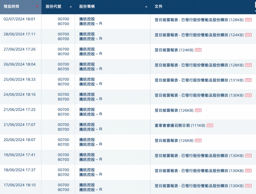 7 月 3 日消息,据港交所披露信息统计,腾讯控股连续两个季度稳居港股回购王,且二季度的回购力度还在继续加大。