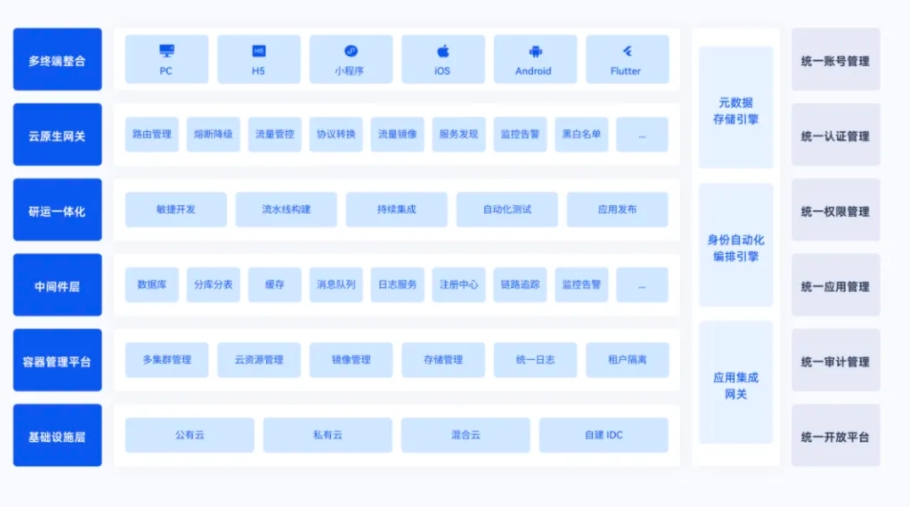 为确保系统在任何情况下都能保持高效运行,IDaaS 平台基于开发运营一体化(DevOps) 体系,建立了一套全链路、自动化的高可用体系。这一体系涵盖了从发布变更前的全面测试,到业务运行时的实时监控和错误感知,再到流量镜像环境的模拟和控制,确保系统始终处于最佳状态。