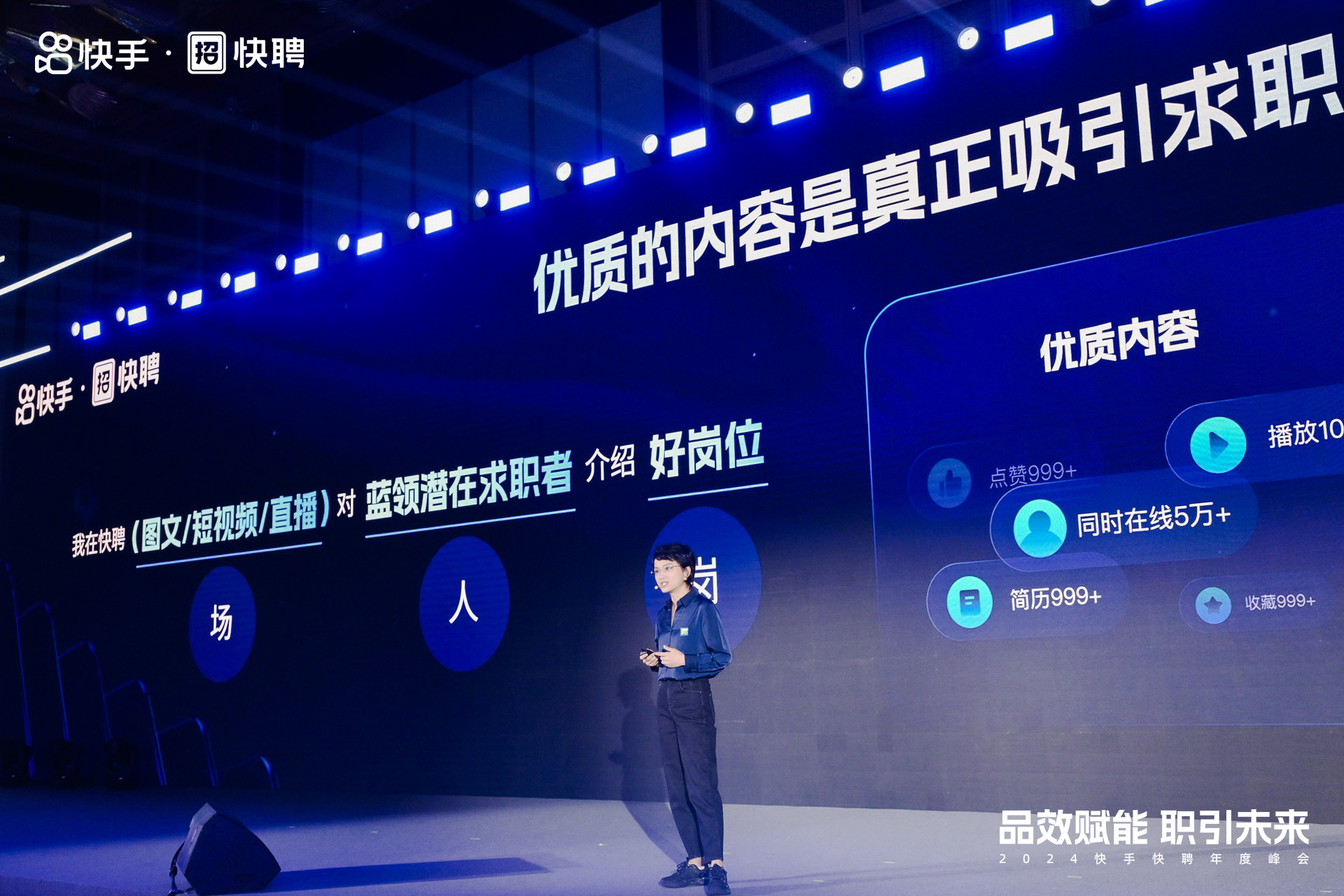 7月11日,快手快聘在青岛举办2024年度峰会,快手副总裁、快手快聘业务负责人李欢在现场表示,2024年要持续聚焦蓝领人群,构建基于内容与算法、视频直播与社交相结合的招聘生态,打造全域招聘解决方案。在内容招聘时代,与生态伙伴一起重构老铁的求职决策。