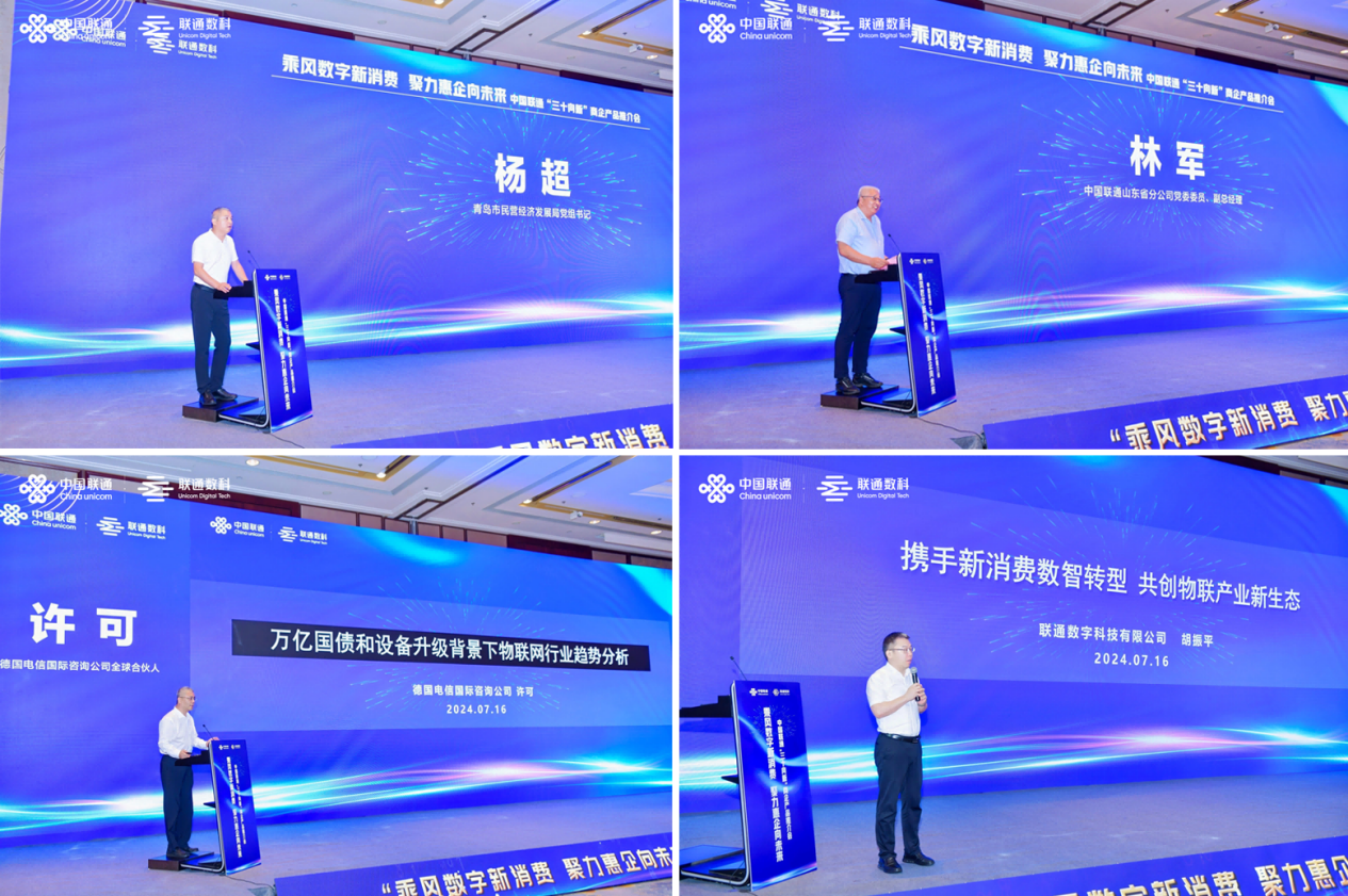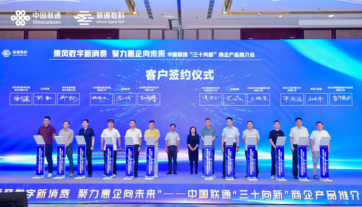 7月16日,以“乘风数字新消费、聚力惠企向未来”为主题的中国联通“三十向新”商企产品推介会在青岛成功举办。本次会议由山东省物联网协会指导,中国联通集团公司主办,联通数字科技有限公司、中国联通山东省分公司、中国联通青岛市分公司承办,华为技术有限公司、云粒智慧科技有限公司协办。此次推介会旨在展示中国联通针对数字新消费领域打造的专项产品,拉动行业供需发展、促进产业深度共融,进一步助力企业降本增效、加速实现数字化转型。