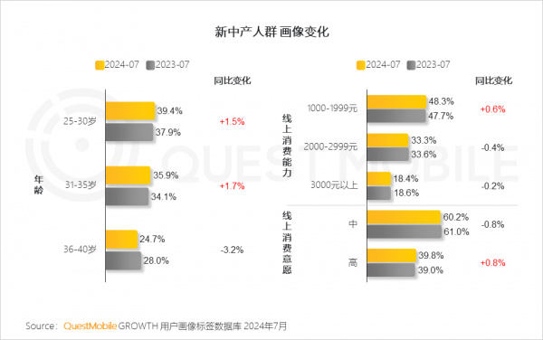 数据显示,2024年,新中产人群年龄结构持续年轻化,25岁到30岁之间人群占比接近4成,31岁到35岁人群也突破35.9%。
