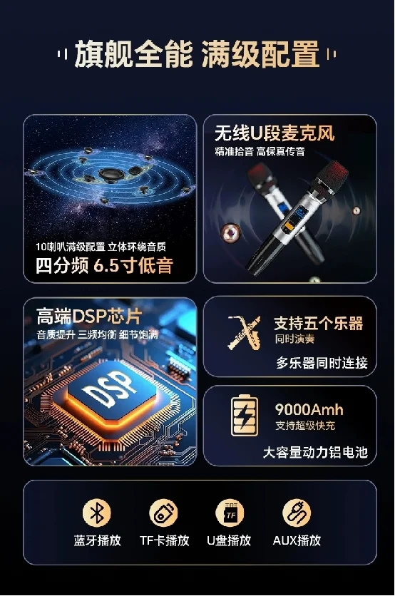 音响的扩展接口也很丰富,无论是储存卡、U盘,还是其他数字设备,都能方便地连接,拓展了使用场景。内置的监听及内录功能更是同价位音响中的罕见配置,为音乐创作和现场演出提供了更多的可能性。