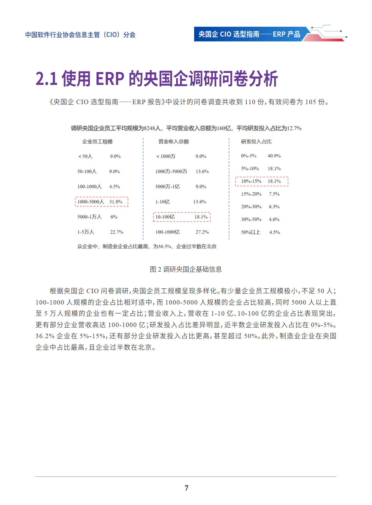 2. 调研问卷基础数据分析:对使用ERP的央国企调研显示,企业员工规模、营业收入和研发投入占比呈现多样化,制造业企业占比最高。ERP厂商在城市分布上以北京居多,员工规模以小于50人占比最高,成立时间20年以上的企业占比超45%。
