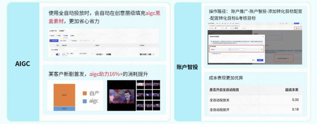 在消耗跃升的同时,快手磁力引擎以提效产品为广告主“减负”。在创编侧,“智能创意”全链路升级提升跑量与优化效率,“sdpa商品库”则优化了管理规范性;在内容端,AIGC显著提升IAA素材效率,“老剧复投”智能推荐带来老剧增量。