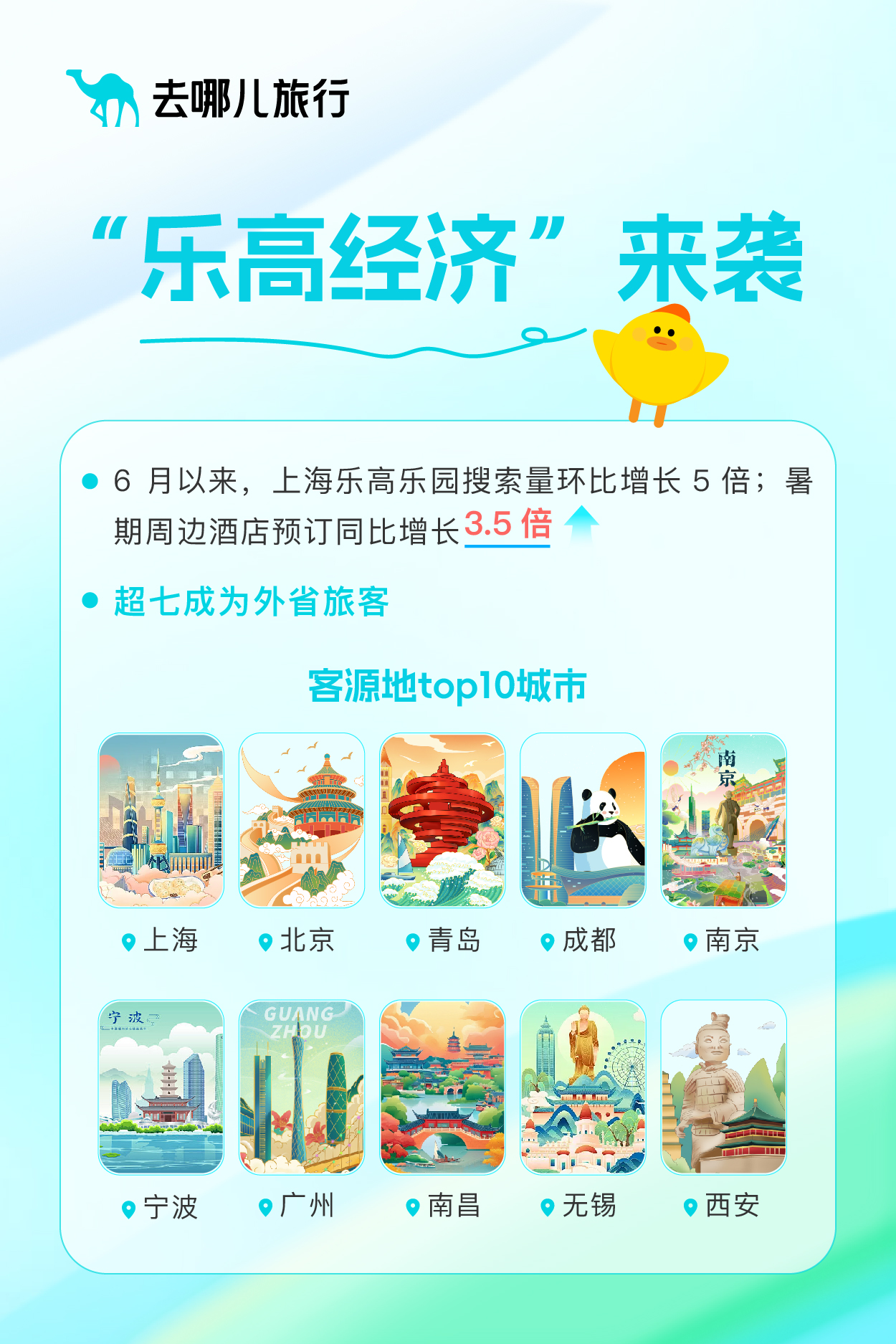 哪儿的客人最爱去乐高乐园?去哪儿数据显示,截至7月4日,预订乐高乐园周边酒店的用户主要来自上海、北京、青岛、成都、南京、宁波、广州、南昌、无锡和西安。