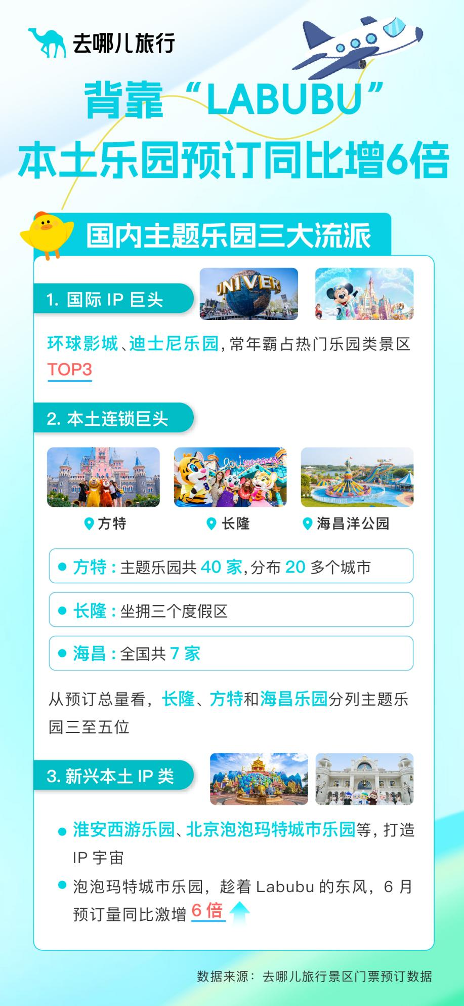 去哪儿数据显示,北京泡泡玛特城市乐园趁着Labubu的东风,6月预订量同比激增6倍,已超越本地老牌景区北京欢乐谷,仅次于北京环球影城。