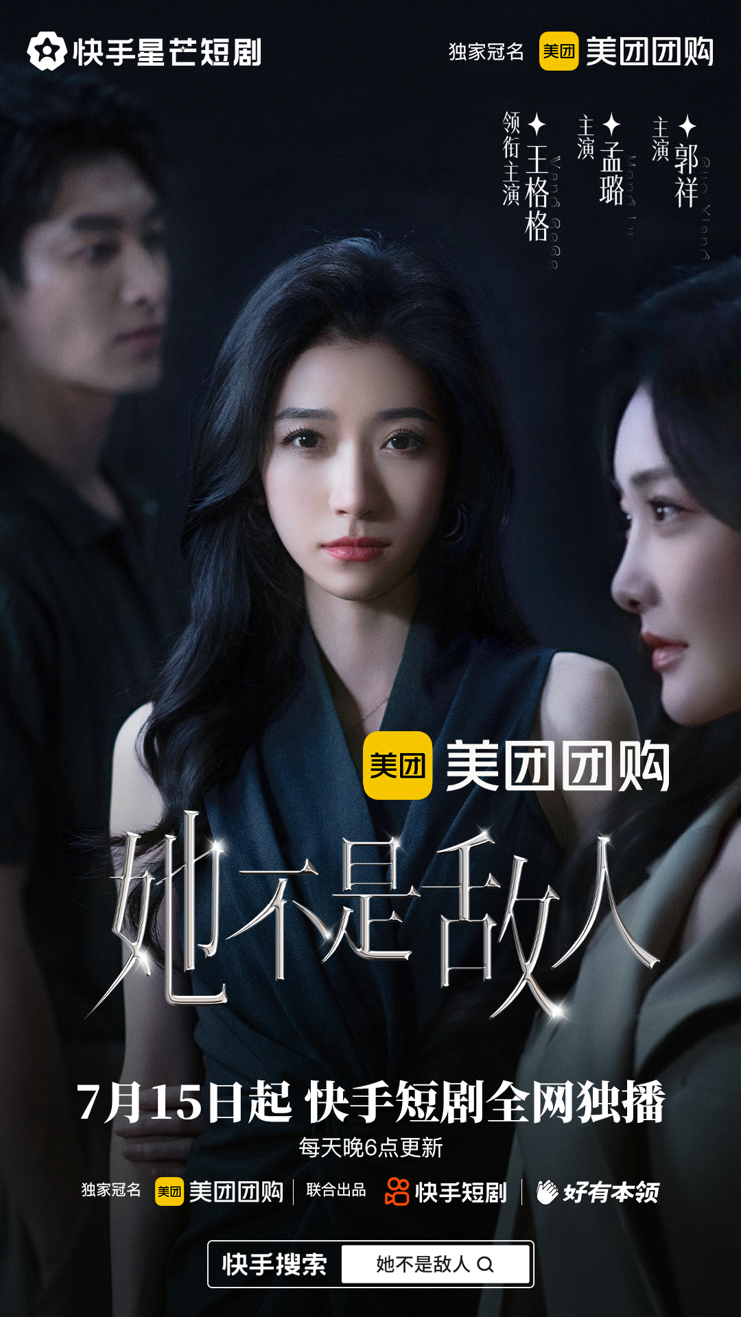 双爆款女主飙戏,斗渣男化敌为友。2025年7月15日,快手星芒短剧《她不是敌人》正式上线,在快手短剧进行全网独播。该剧由美团团购独家冠名,快手与北京好有本领文化传媒有限公司共同出品,将用20集、每集3-5分钟篇幅呈现另类婚姻危机,讲述两个女性从情敌变朋友、共同摆脱渣男、相互救赎治愈的故事。