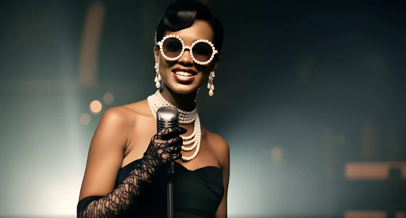 在对口型这一基础指标上,可灵AI数字人展现出了业界领先的精准度。实测案例中,一位女歌手正演唱英文歌曲,其唇形与快速变化的歌词音节完美贴合,复杂口型也表现出色。而根据提示词“眼神专注自信地唱歌”,数字角色更呈现出自信的眼神、持麦的自然姿态,以及与观众互动的微笑,生动还原了歌手在舞台上的表演状态。