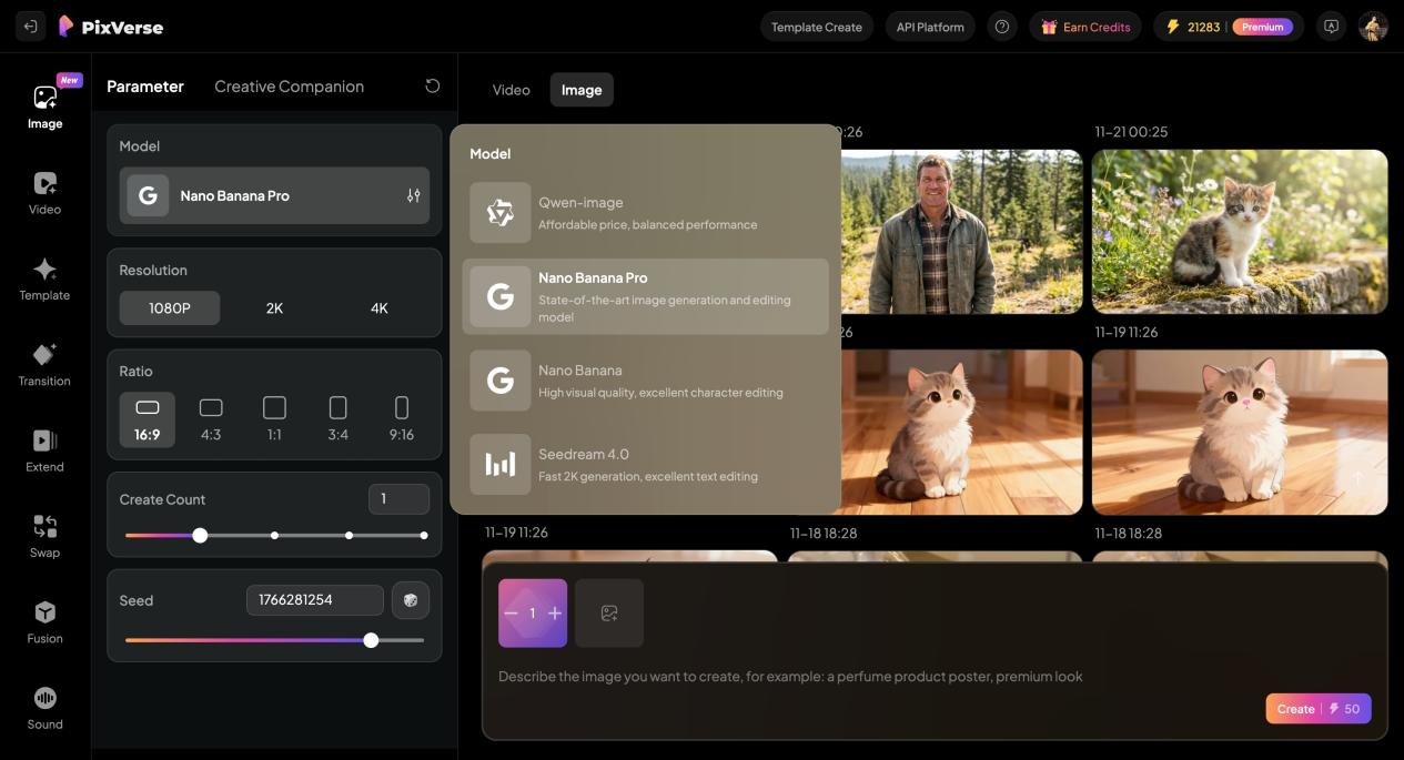 过去一周,PixVerse(拍我AI) 推出了 V5 Fast模式,将 5 秒钟的 1080P 视频生成时长缩短至 1 分钟以内,大大提升了视频制作效率。同时,在接入 Nano Banana Pro 之前,平台已支持 Qwen-image、Seedream4.0 和 Nano Banana生图模式,为用户提供更高效的从图像到视频的创作体验。
