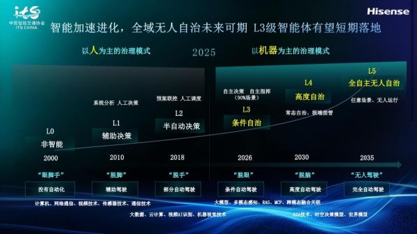 行业巨变之下,通过技术创新打造过硬专业能力成为厂商的发展基础。“智能”作为交通行业二十多年的发展主线,目前行业对其具体标准还没有统一界定。参考自动驾驶的5级分类模式,海信将智能交通系统按照智能水平划分为L1-L5五个阶段。