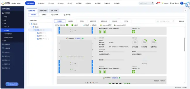 用户核心层使用信锐澎湃框式核心交换机(图一),设备采用“瘦”模式架构,做到全框1:1可视化还原,可通过管理平台对核心交换机的板卡、端口、电源、ARP、路由资源等软硬件所有状态无盲点查看。
