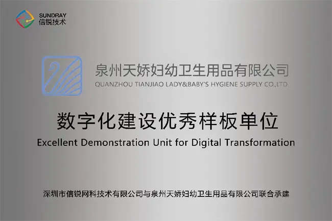 泉州天娇妇幼卫生用品有限公司(以下简称“天娇妇幼”)创立于2005年,是一家集研发、生产、销售、服务为一体的妇幼卫生用品大型制造企业。公司在福建泉州、湖北孝感拥有三大生产基地,总面积约750亩,已建成现代化标准厂房超过36万平方米。2021年,天娇妇幼获评为“国家高新技术企业”,并以此为契机,全面推进数字化转型。