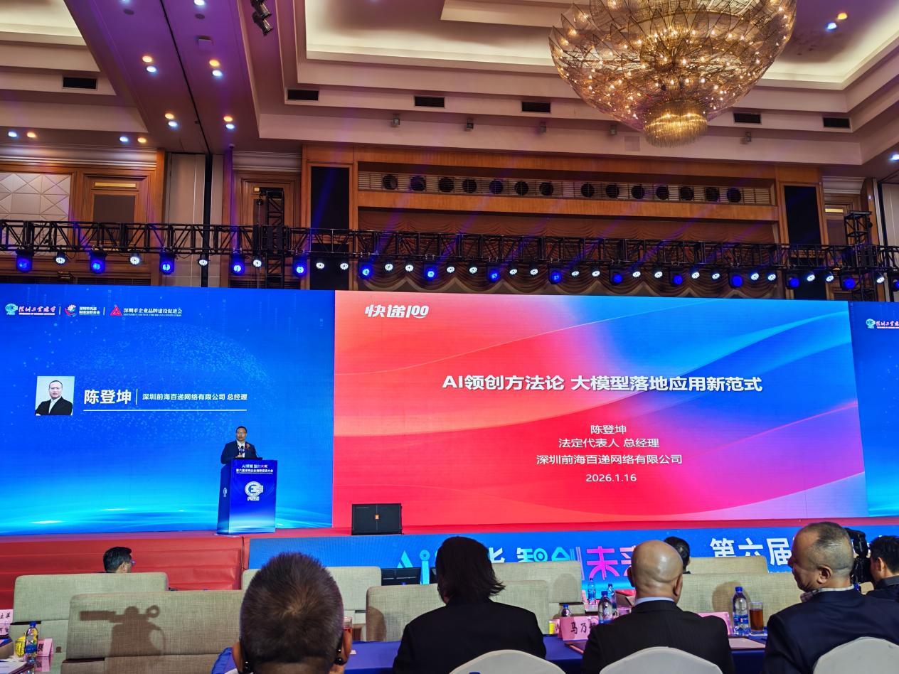 2026年1月16日,第六届深圳企业创新促进大会暨深圳工业总会2025年度年会在深圳五洲宾馆召开。快递100总经理陈登坤受邀发表《AI领创方法论大模型落地应用新范式》主题分享,首次对外发布快递100沉淀三年的AI领创方法论。